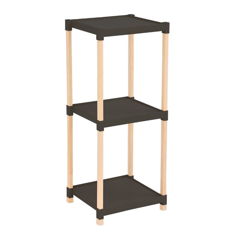 Ραφιέρα δαπέδου πλαστική – ξύλινη χρώμα φυσικό – μαύρο 28x25x72εκ.
