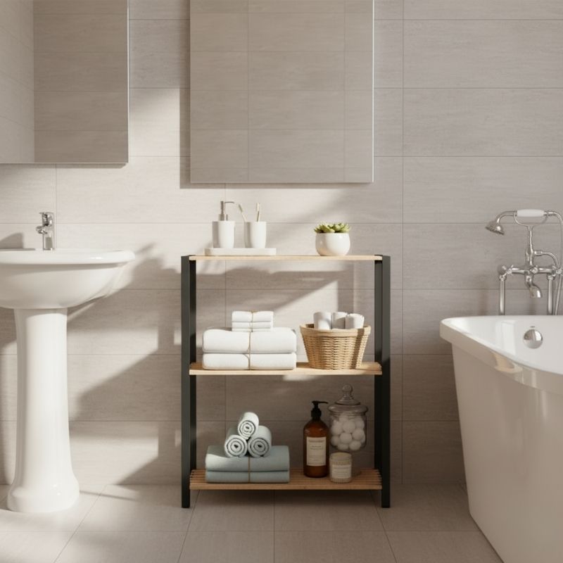 Ραφιέρα δαπέδου – Τραπεζάκι βοηθητικό ξύλινο – πλαστικό χρώμα φυσικό – μαύρο 65x29x78εκ.