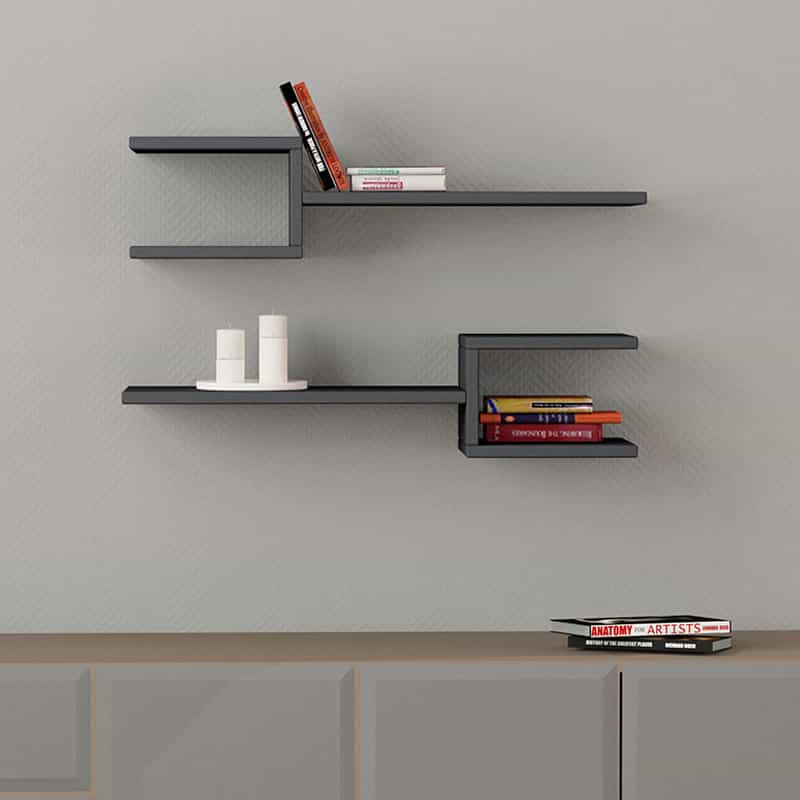 Ραφιέρα τοίχου Fork Megapap 2 τεμαχίων από μελαμίνη χρώμα ανθρακί 75×19,5×18εκ.