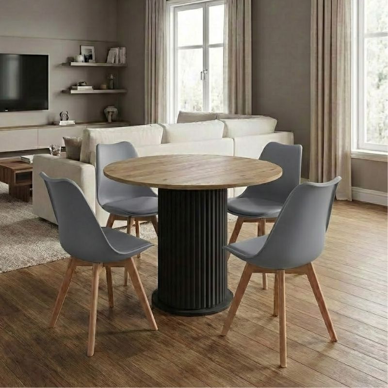 Σετ τραπεζαρία 5τμχ Bohema – Viva Megapap χρώμα μαύρο/sepet oak – γκρι Ø90×77,7εκ.