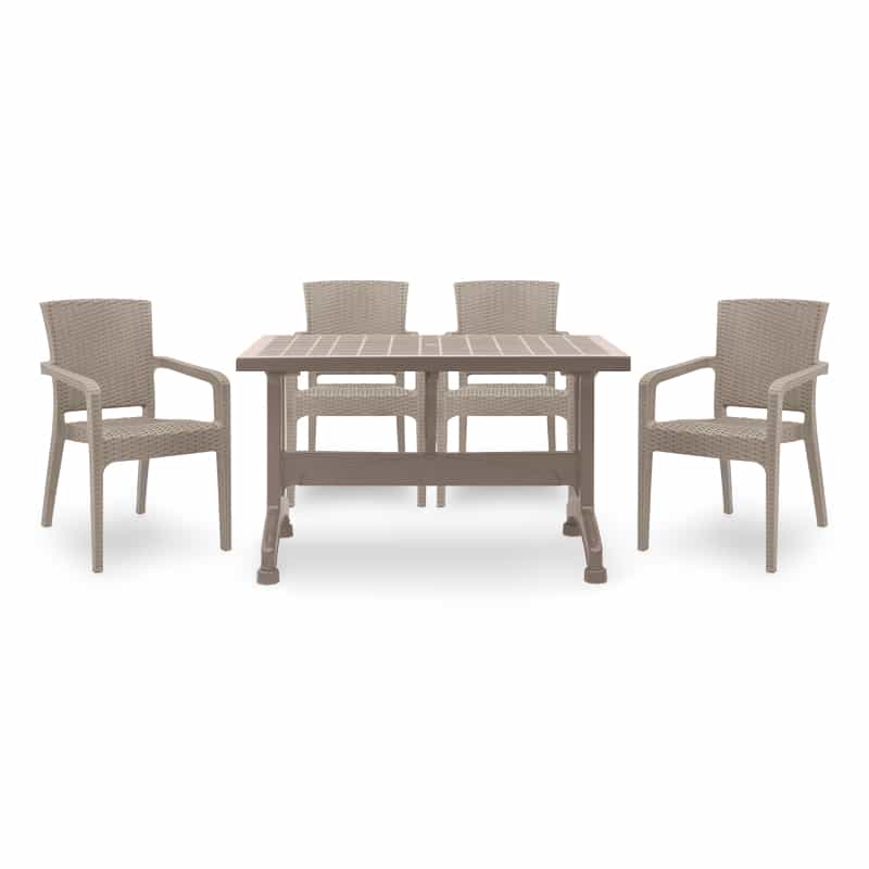 Σετ τραπεζαρία κήπου Callan Megapap 5τμχ πολυπροπυλενίου τραπέζι 140×70 – πολυθρόνα recycled χρώμα cappuccino S_GP046-0003,2+GP046-0001,3×4