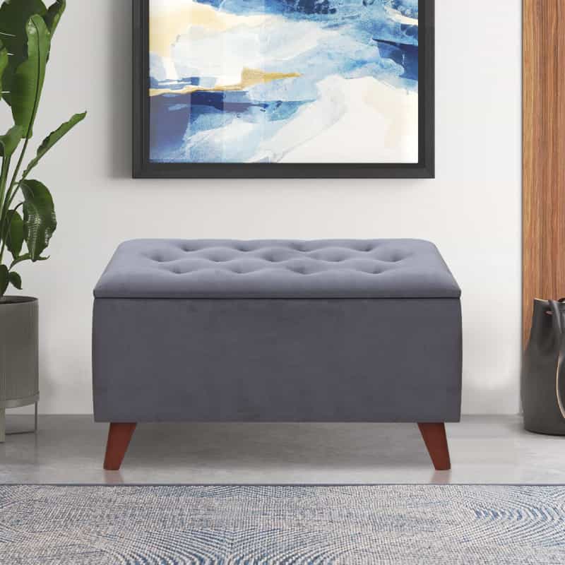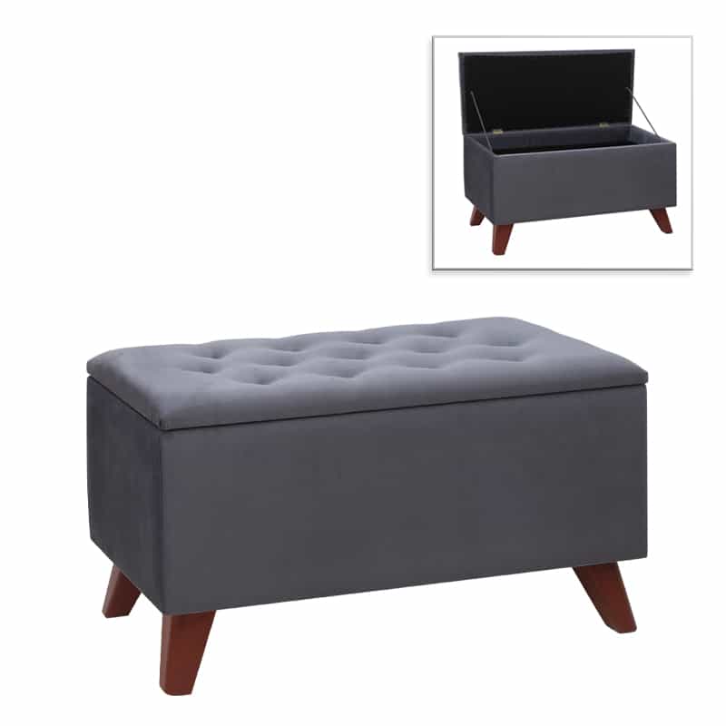Σκαμπώ – Ταμπουρέ Lotus Megapap βελούδινο χρώμα ανθρακί 90x40x50εκ.