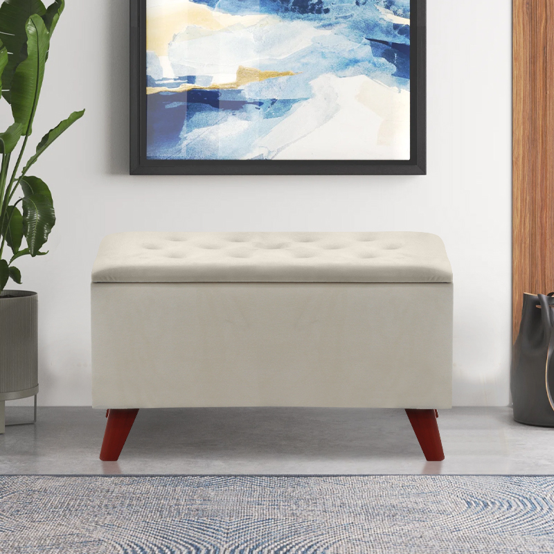 Σκαμπώ – Ταμπουρέ Lotus Megapap βελούδινο χρώμα κρεμ 90x40x50εκ.
