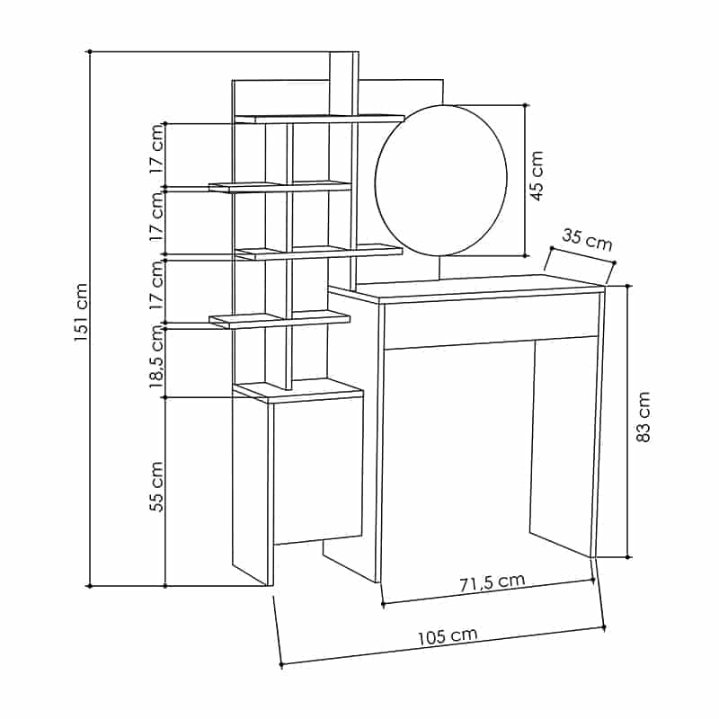 - Διαστάσεις: Μήκος 105 x Βάθος 35 x Ύψος 151 εκ.