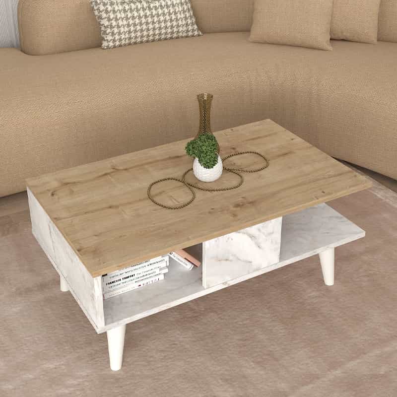 Τραπεζάκι σαλονιού Andros Megapap χρώμα sapphire oak – λευκό εφέ μαρμάρου 90x54x39,6εκ.