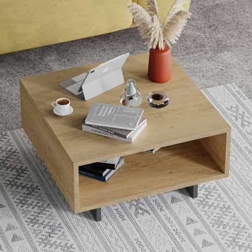 Το τραπεζάκι σαλονιού Devon διαθέτει μηχανισμό που επιτρέπει να σηκωθεί η επιφάνεια του σε θέση σερβιρίσματος για το φαγητό ή το laptop, δημιουργώντας χώρο για την αποθήκευση αντικειμένων στο εσωτερικό του.