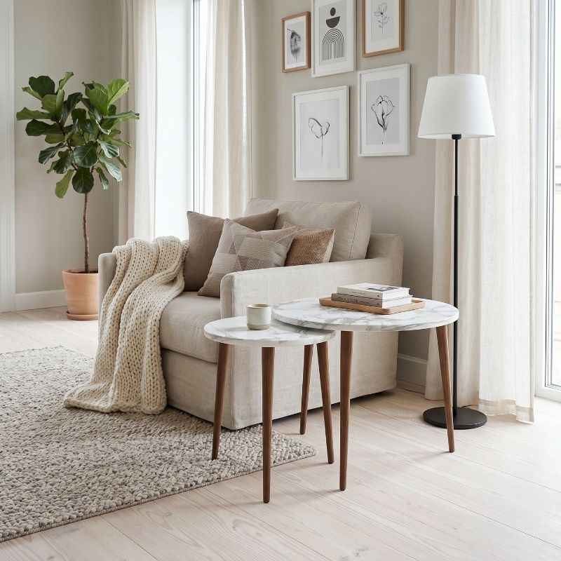Τραπεζάκι σαλονιού σετ 2 τμχ Nola Megapap χρώμα λευκό εφέ μαρμάρου Ø60×46εκ.