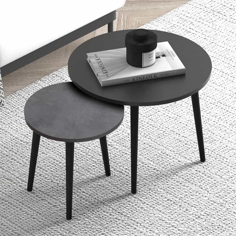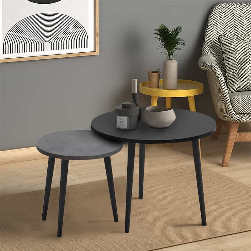 Τραπεζάκι σαλονιού σετ 2 τμχ Roma Megapap χρώμα μαύρο – γκρι ρετρό 60x60x46εκ.