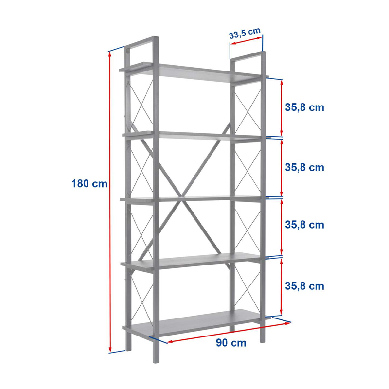 Βιβλιοθήκη Elysian Megapap χρώμα travertine – μαύρο 90×33,5×180εκ.