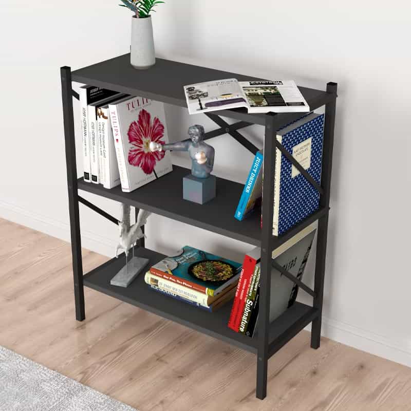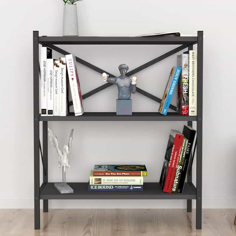 Βιβλιοθήκη Jocasta Megapap μεταλλική – μελαμίνης χρώμα ανθρακί 66x34x85εκ.