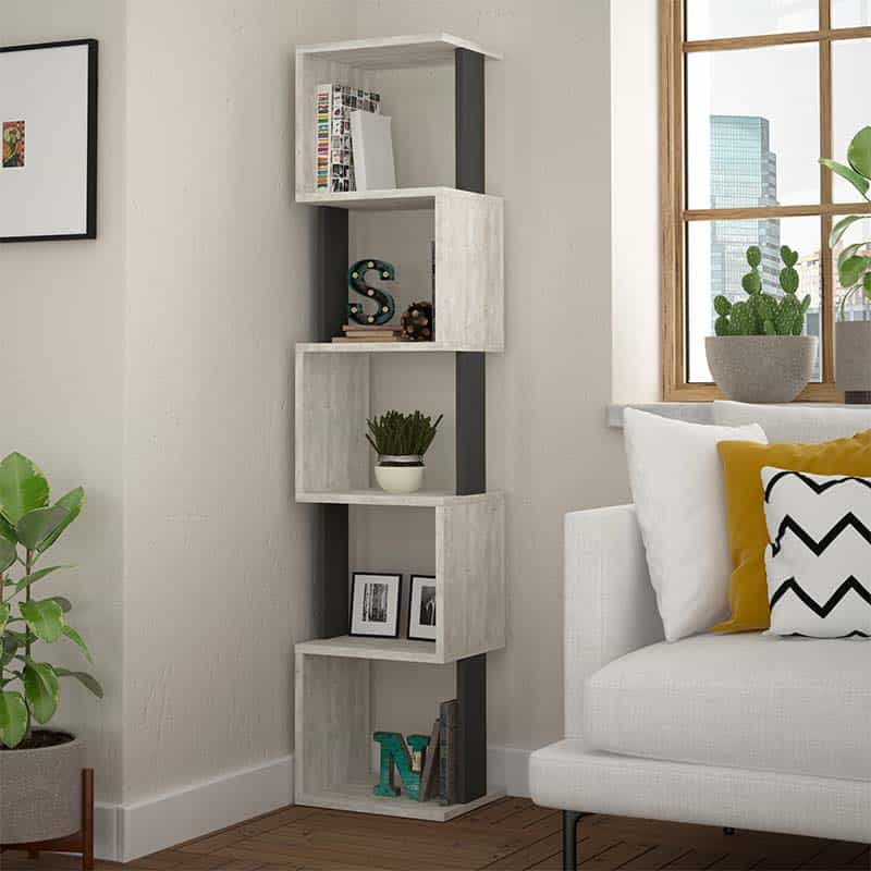 Βιβλιοθήκη μελαμίνης Piri Megapap χρώμα λευκό αντικέ – ανθρακί 35x30x161εκ.