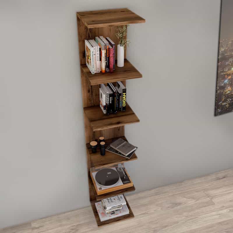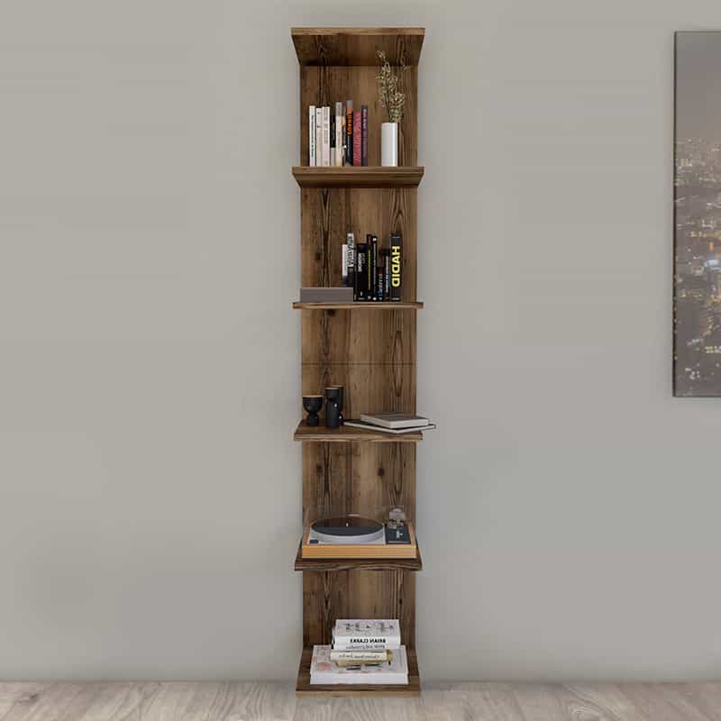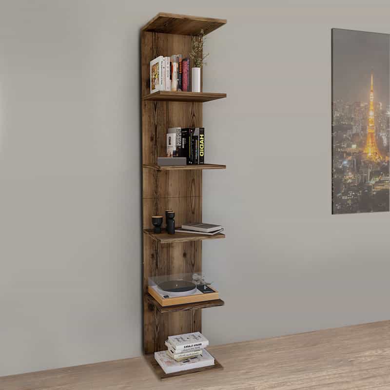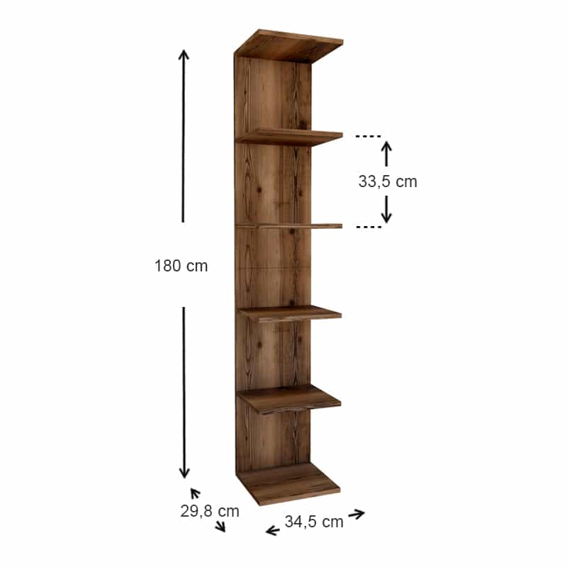 Βιβλιοθήκη – Ραφιέρα τοίχου μελαμίνης Ogden Megapap χρώμα καπνιστή καρυδιά 34,5x30x180εκ.
