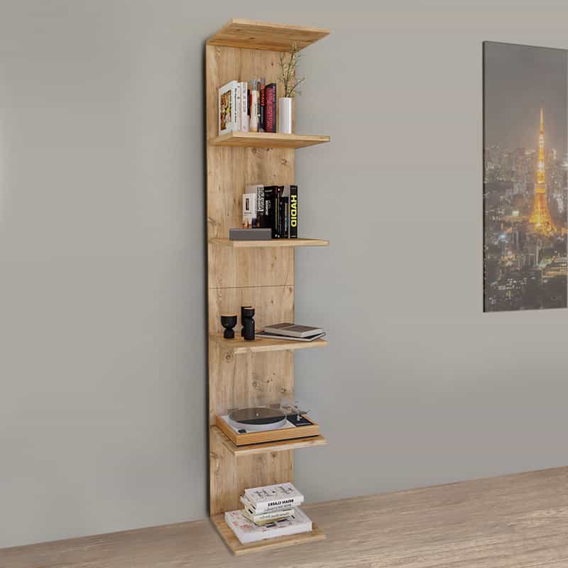 Βιβλιοθήκη – Ραφιέρα τοίχου μελαμίνης Ogden Megapap χρώμα pine oak 34,5x30x180εκ.
