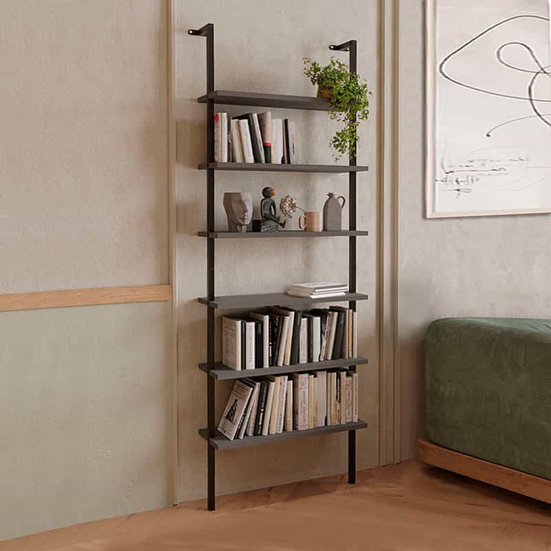 Βιβλιοθήκη τοίχου Madison Megapap μεταλλική – μελαμίνης χρώμα μαύρο – ανθρακί 60x20x183εκ.
