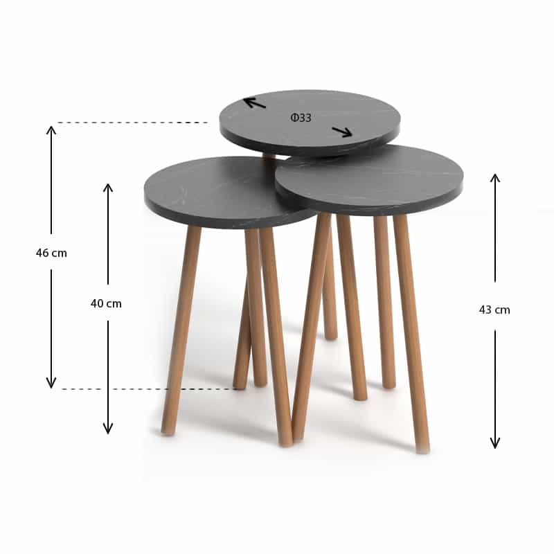 - Διαστάσεις μεσαίου τραπεζιού: Μήκος 33 x Βάθος 33 x Ύψος 43 εκ.
