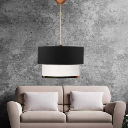 Φωτιστικό οροφής Fanny Megapap E27 υφασμάτινο μονόφωτο χρώμα μαύρο – λευκό Φ30×70εκ.